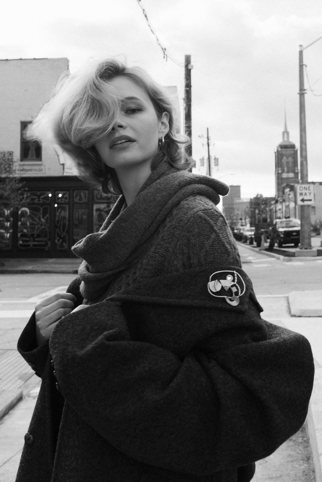 Obsessed with the rich bitch vibe of this sweater. Not only is it a luxe wool/cashmere blend in an amazing weave, but the attached scarf! Get OUT. Built to keep you warm and chic and ready to sip a dirty martini at the drop of a hat. Paired with all grey, all you need is a matching Great Dane (sadly, not included).
