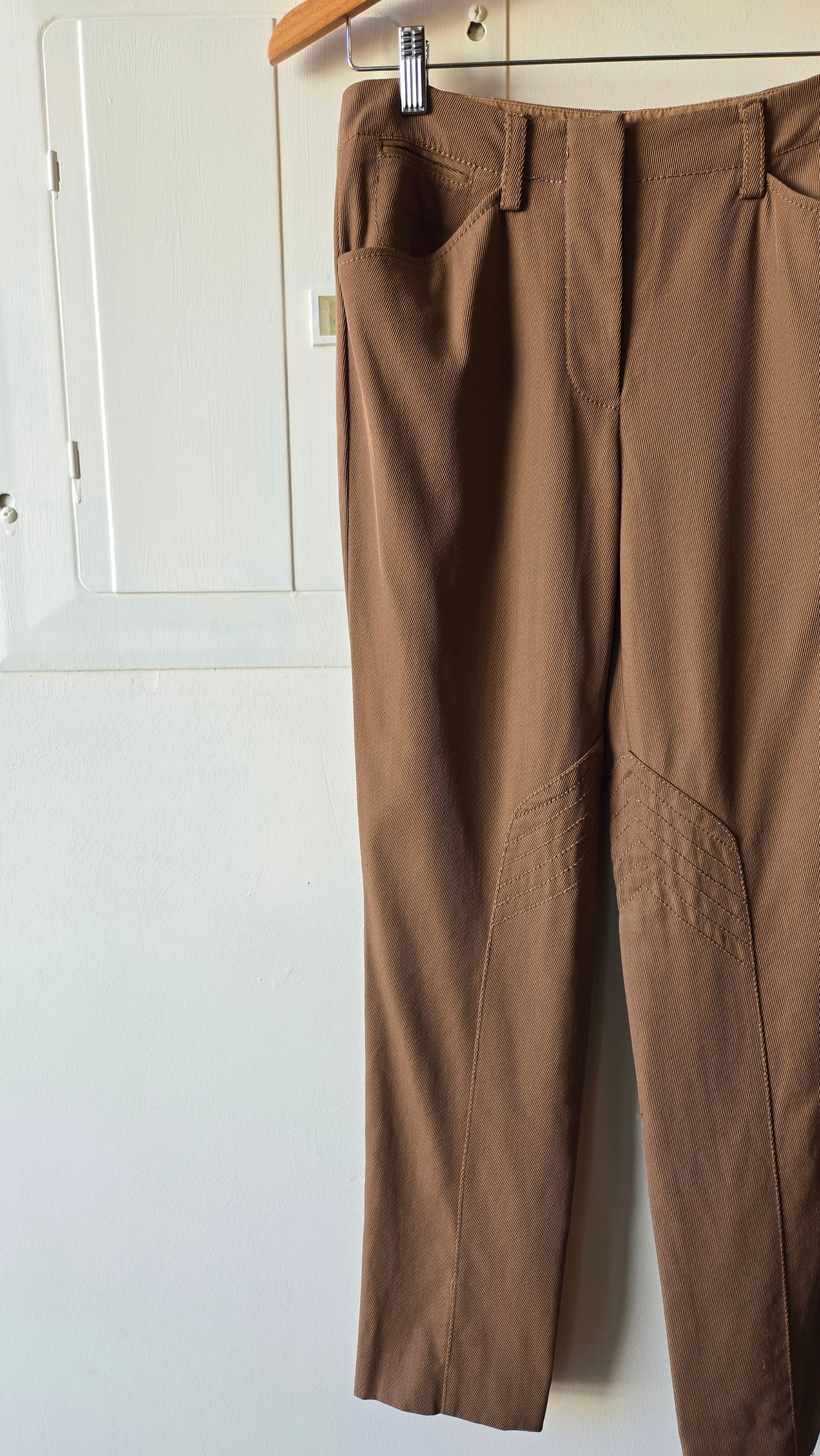 Calling all equestrians! These DKNY pants were made for your everyday wear, not just on a saddle! It has a great quilted inner knee detail and hip pockets galore, but the coolest part is the striated fabric. It's thin and unlined, so you want to make sure you fill them out, so double check them measurements!