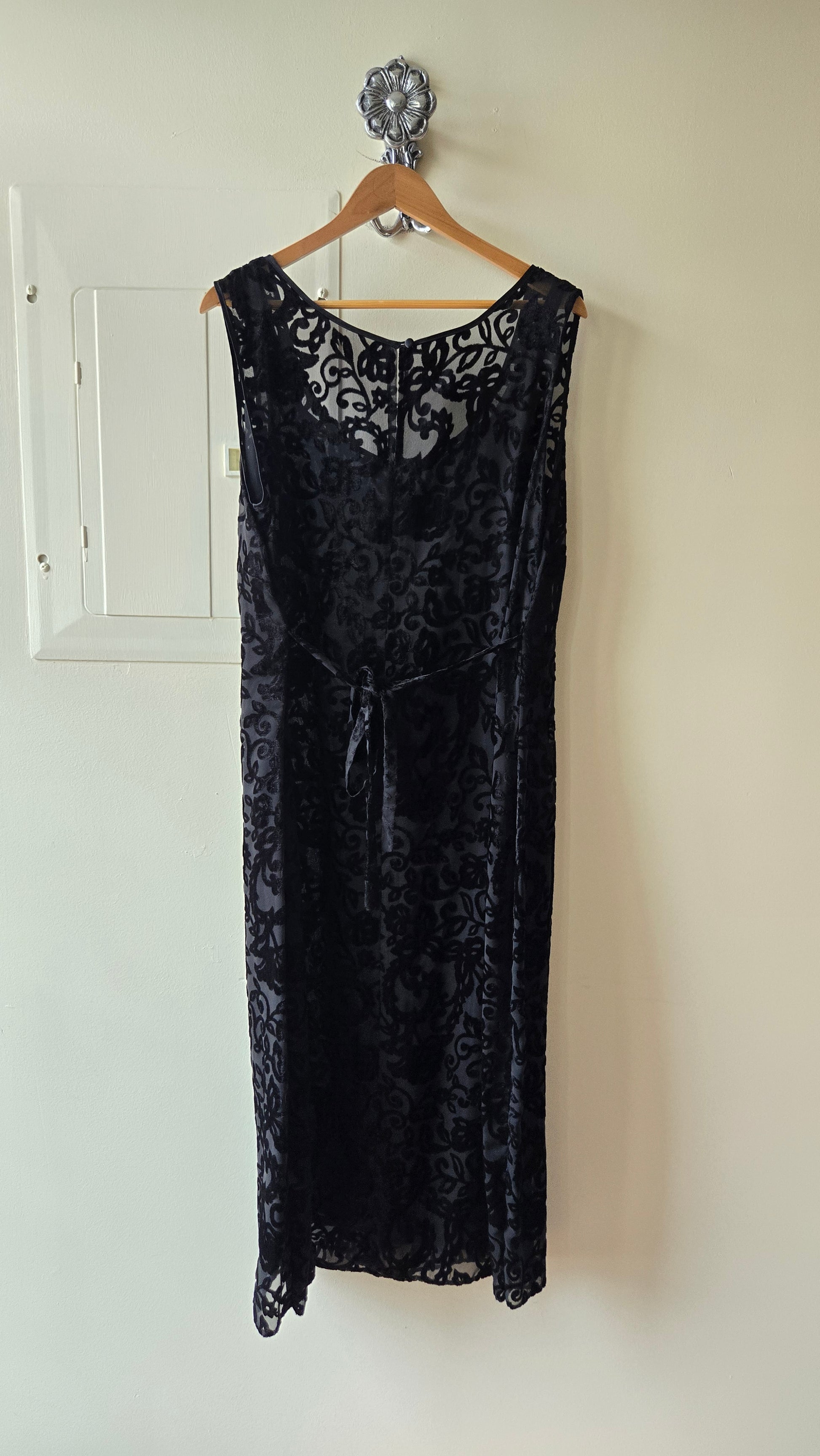 A fun little dress that can swing day or night! The outside layer is sheer with burnout floral design and the bottom layer is a slightly sheer black lining. the nice part about this tank dress is that it has a waist tie that ties in the back so you can adjust how you want this to fit!