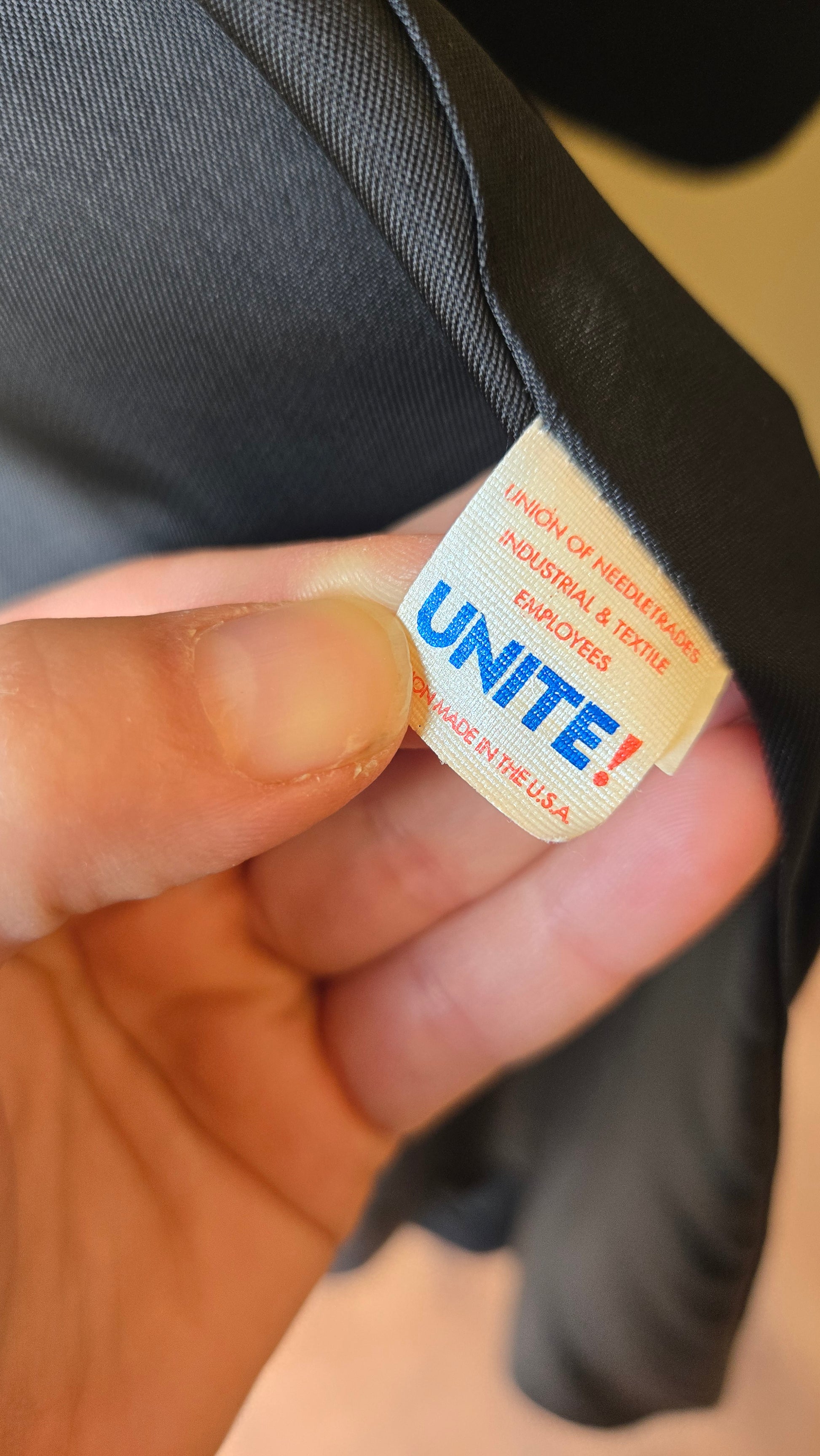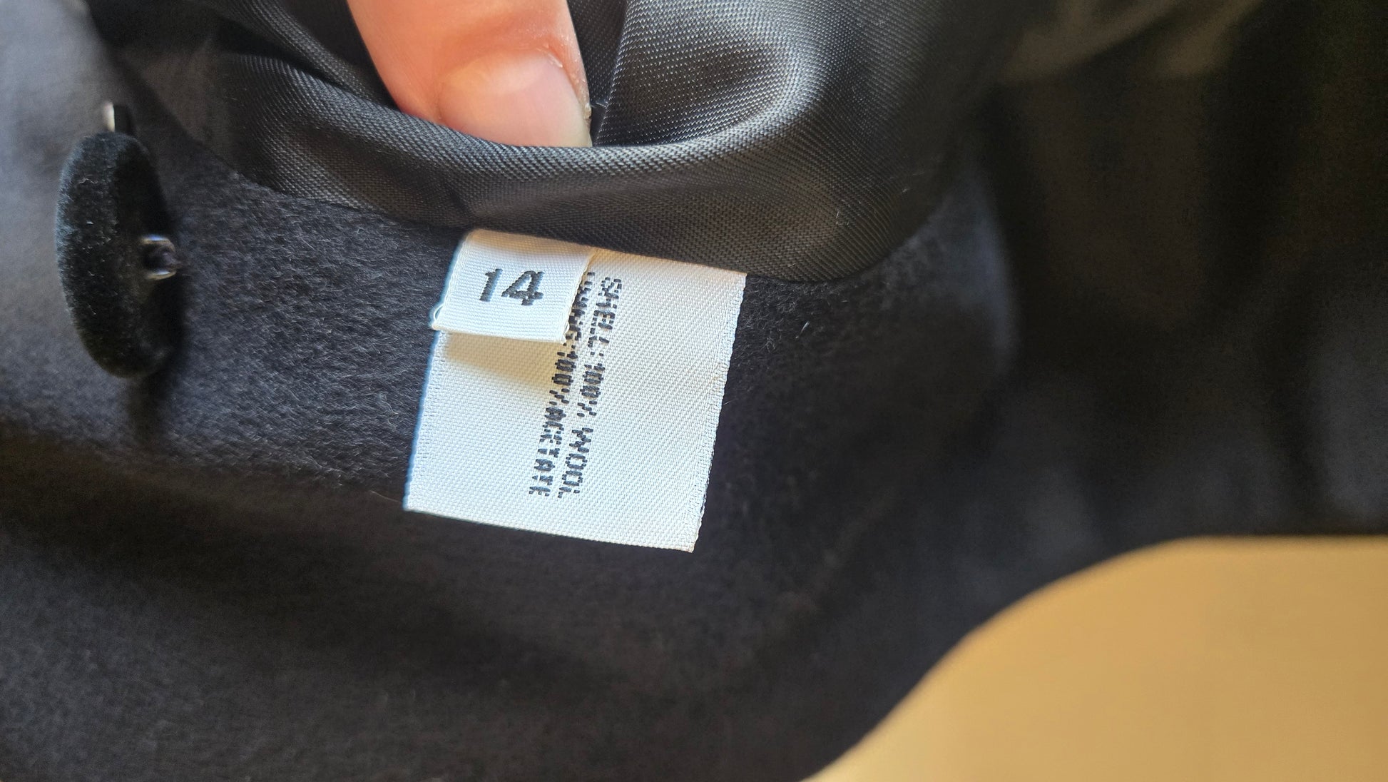Gorgeous rounded shoulder wool coat with velvet collar AND velvet trim on the sleeves! Fully lined with two side pockets, the length of these kinds of coats are always so romantic and dramatic to me. Has one very small moth bite above a pocket but barely noticeable and doesn't remotely affect wearability.