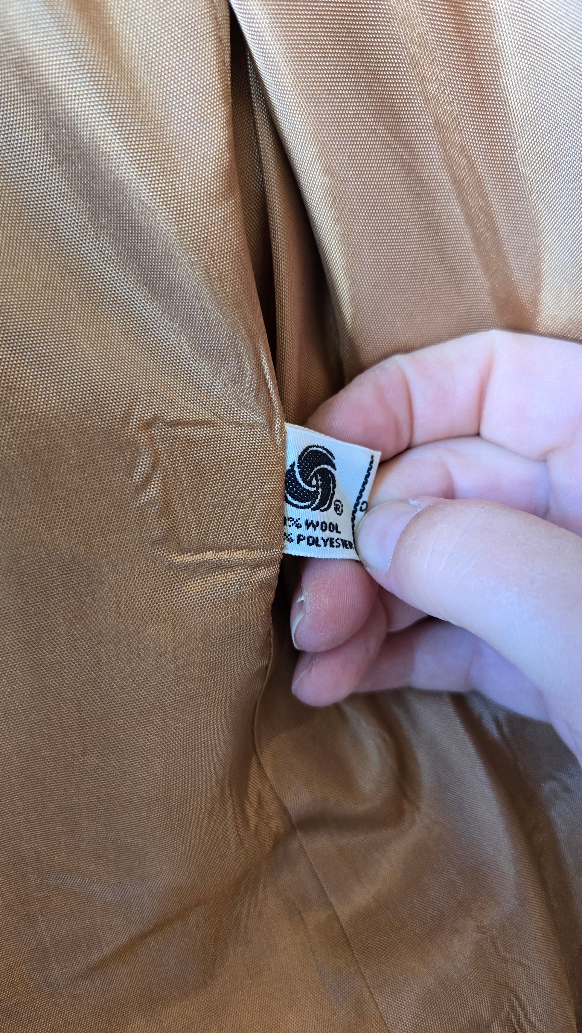 Oh-so tiny but oh-so cool. A very 70s cut with straight, creased pants and a single-breasted shorter blazer. I love that this comes with its own belt, too. Fully lined with two pockets at the hip in the pants, and two pockets at the front of the blazer. Just add a a bandeau and platforms ;)