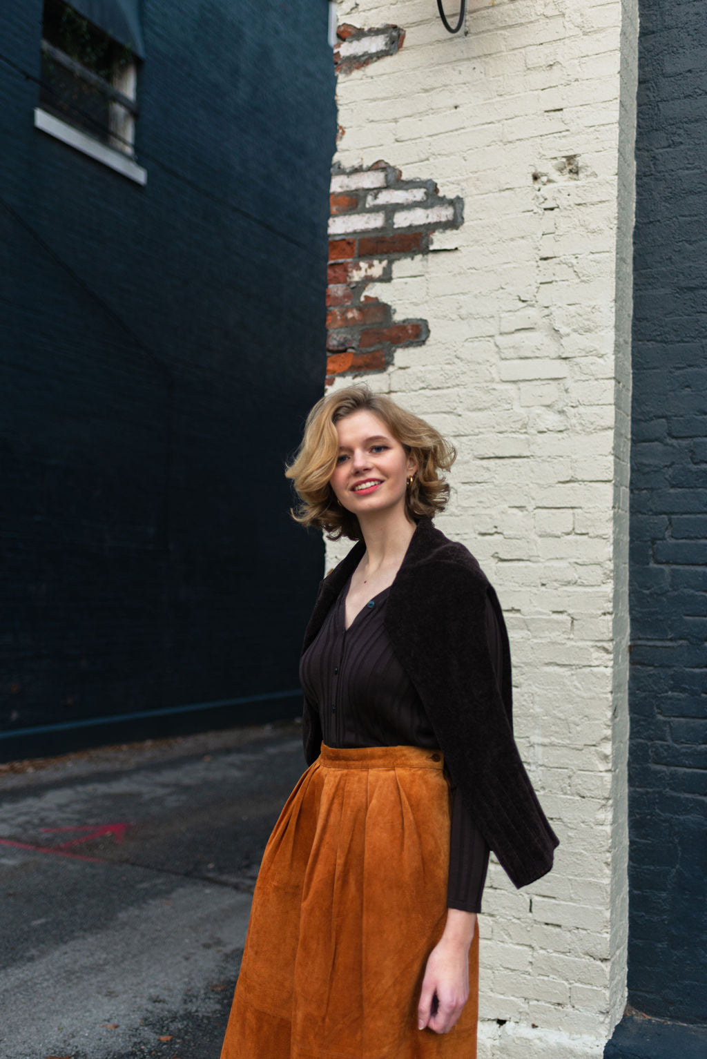 Slim, slinky chenille sweater from one of the best in England. This dark brown sweater is a tunic length, which makes it perfect for layering in the fall and winter. Super soft and has a nice little sheen to it.
