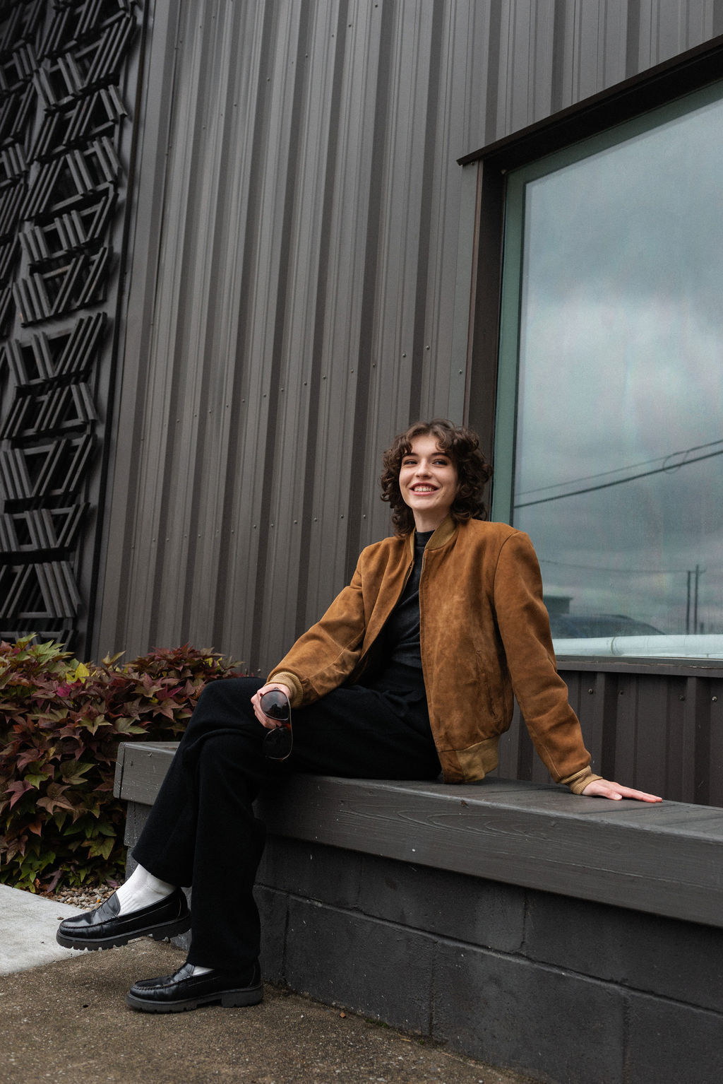 A closet classic, this mock neck top has sleeves that cut right above the elbow. A dark charcoal color, it marries perfectly with camel & black, or nearly everything you could throw at it. Nice and stretchy, it's supposed to fit tight.