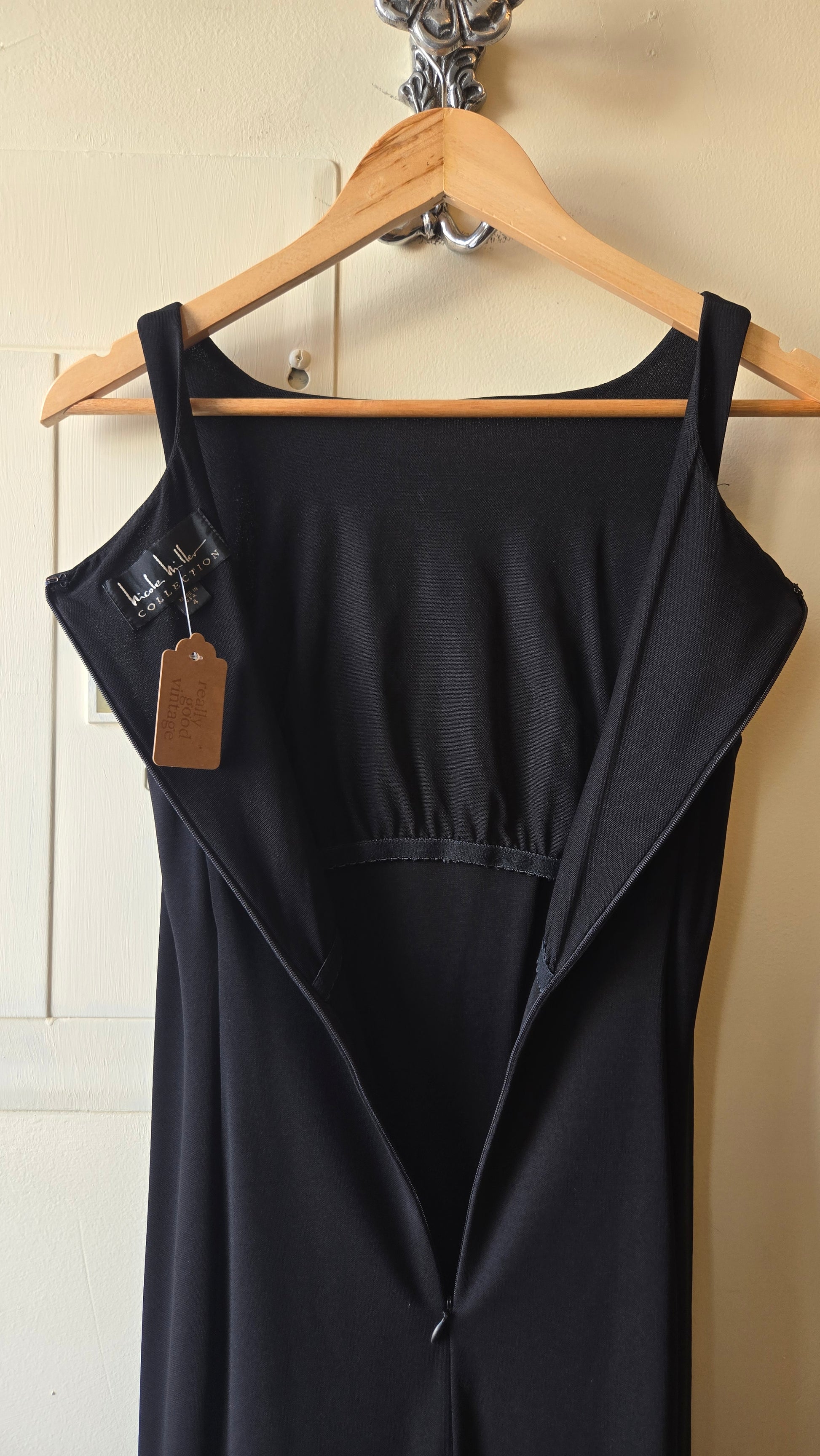 Nobody does a 90s fit quite like Nicole Miller. This is stretchy, layered thick mesh so it just hugs the body. I love the slight boat neck and the fact that it has a built-in bra! She really design for the gals. Slinky and sexy in the best way and just needs some bangles and earrings and you're ready to go!