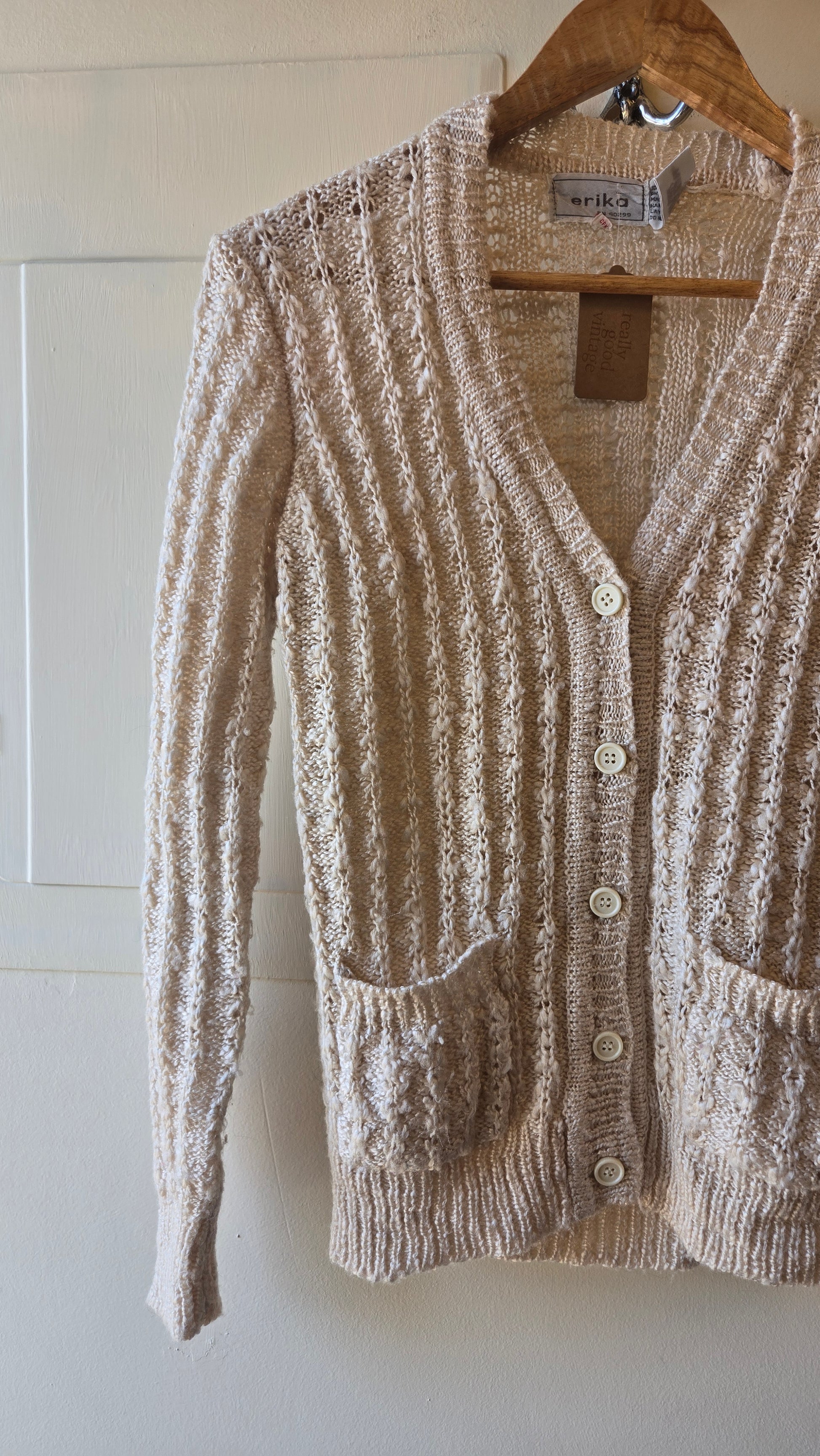 Nubby ivory pocket cardigan