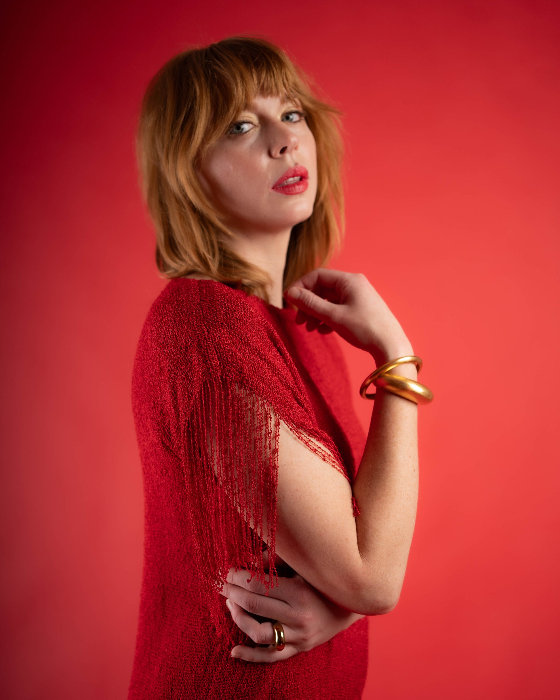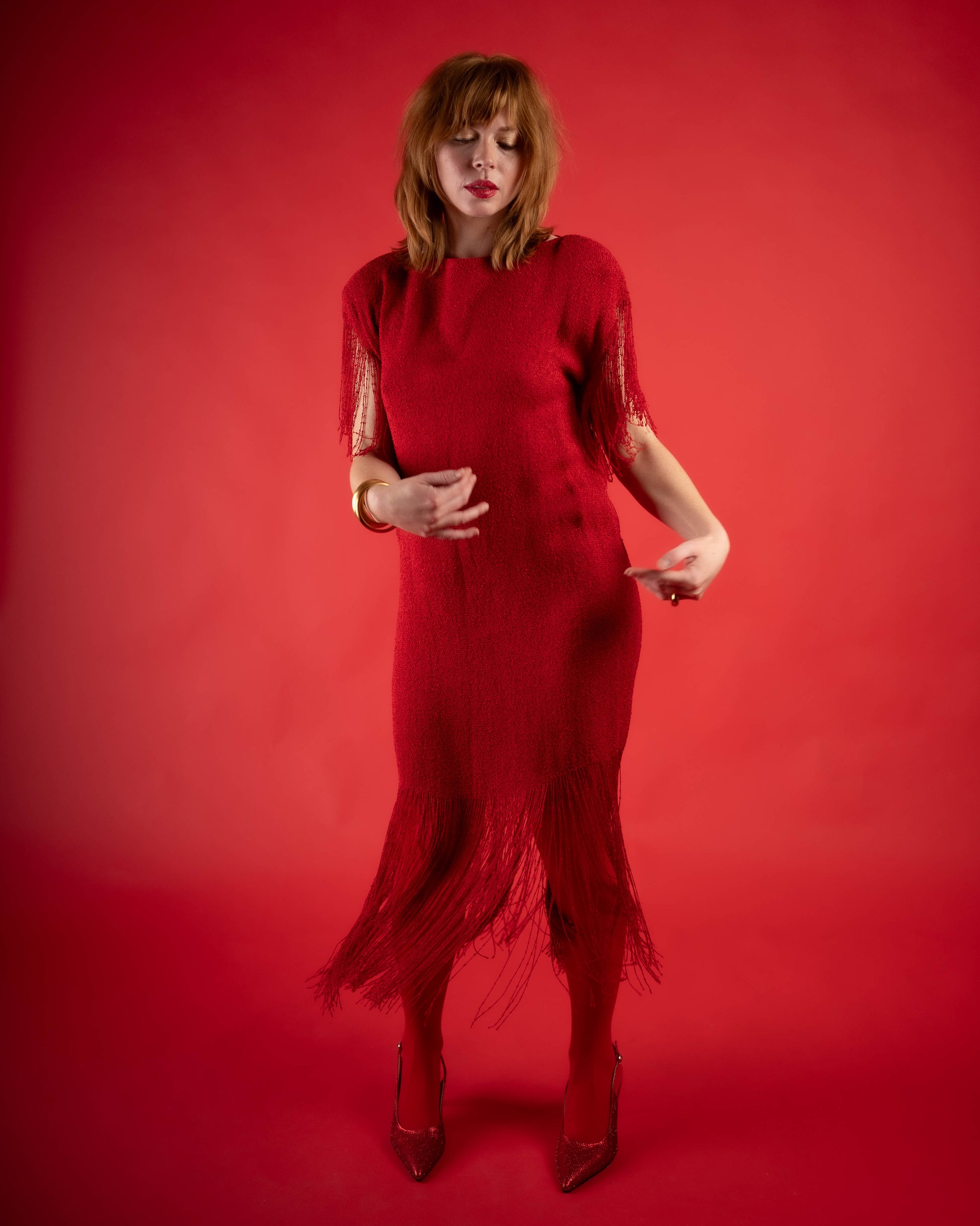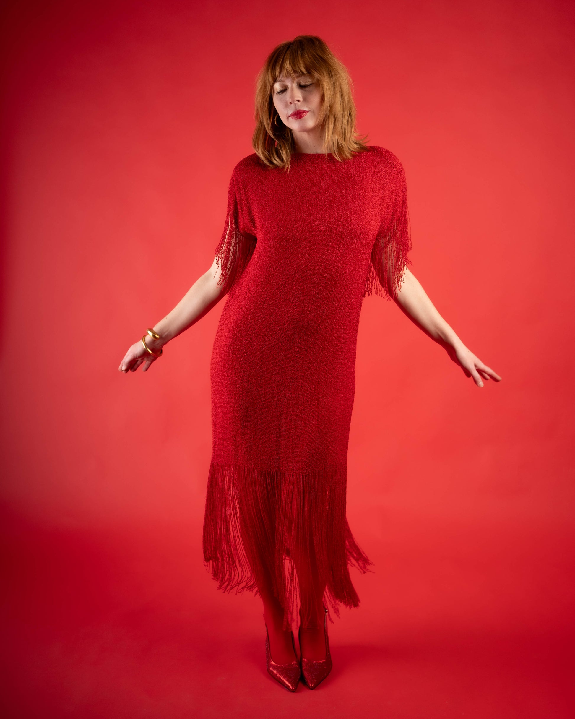 Panache red knit fringe dress