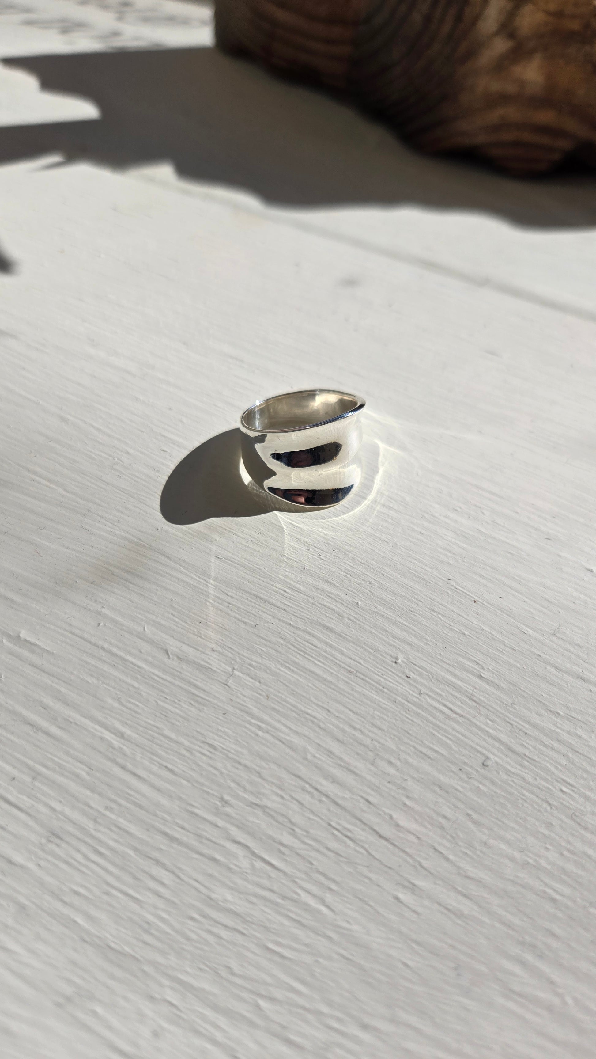 A beautifully formed high-polish statement ring, featuring a double concave shape.