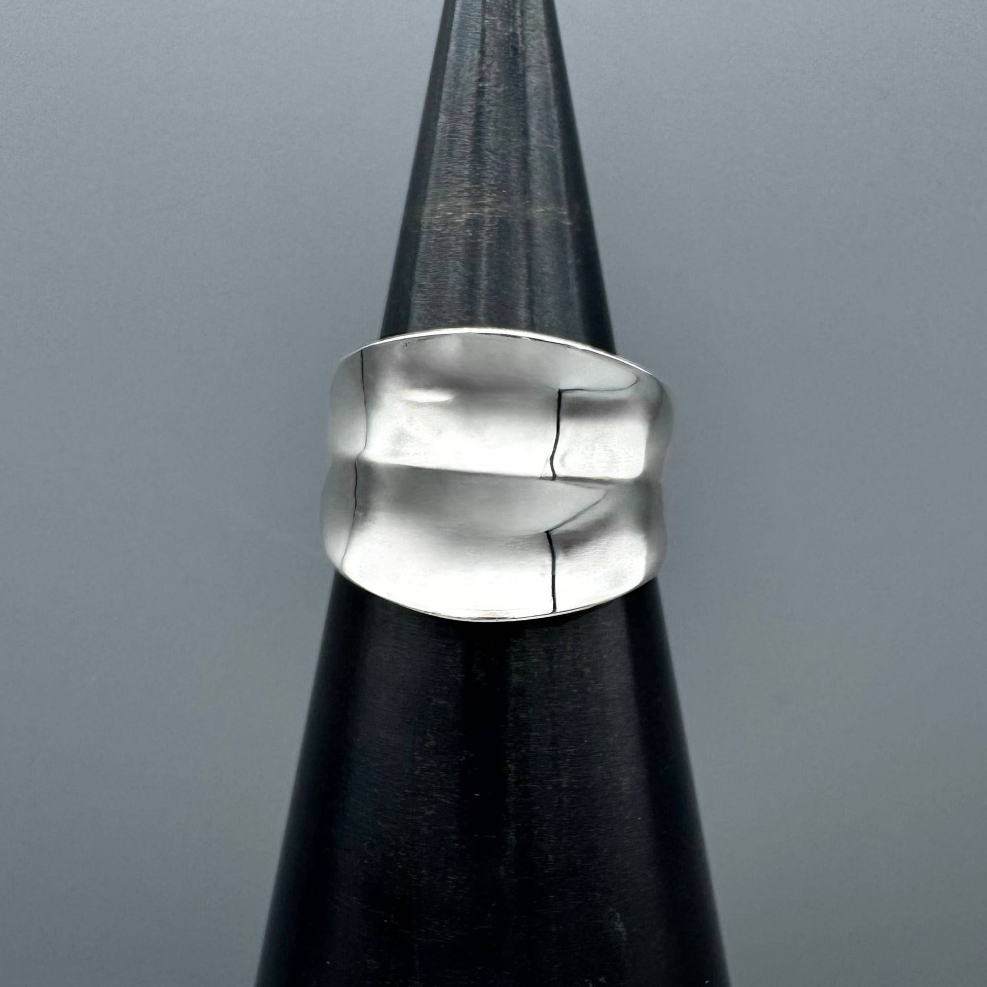 Silver Double Concave Statement Ring: 6
