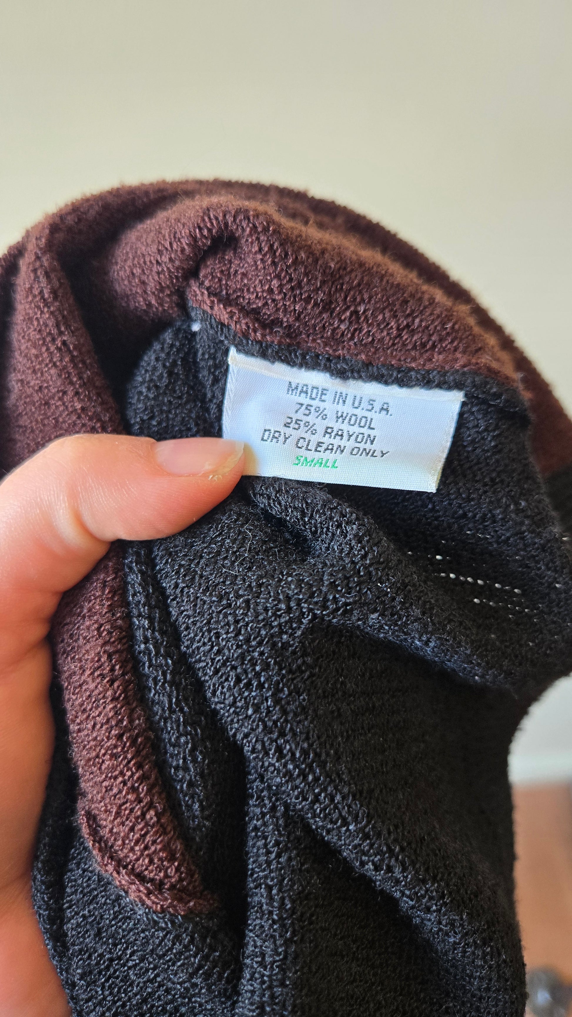 I MEAN. How fun is this! Steve Fabrikant is like St. John in that his knits are sturdy and weighty and fit oh-so well. The brown and black puzzle piece design is the most fun and in my favorite color combo! Unlined with a zip in the back.