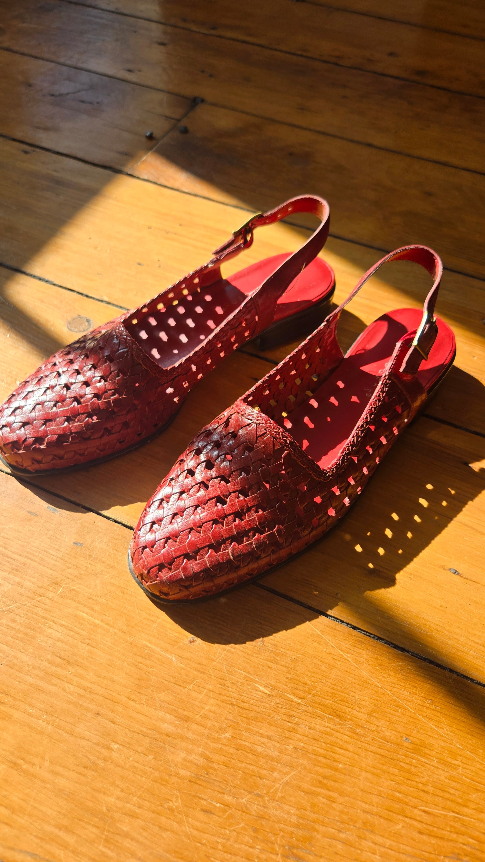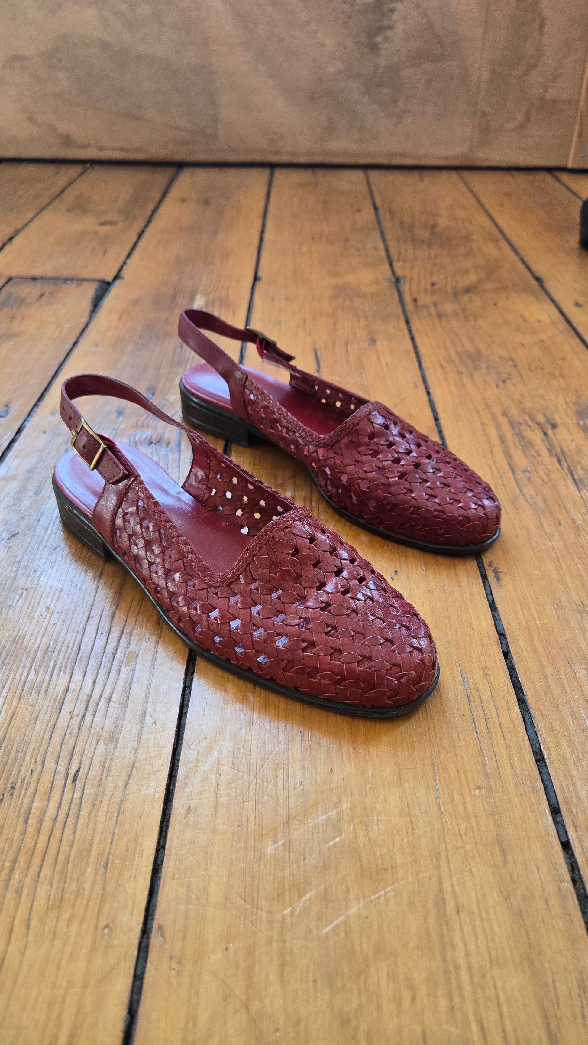 My utter summer dream shoe, a breezy little woven leather body with a chic little slingback. In excellent condition.
