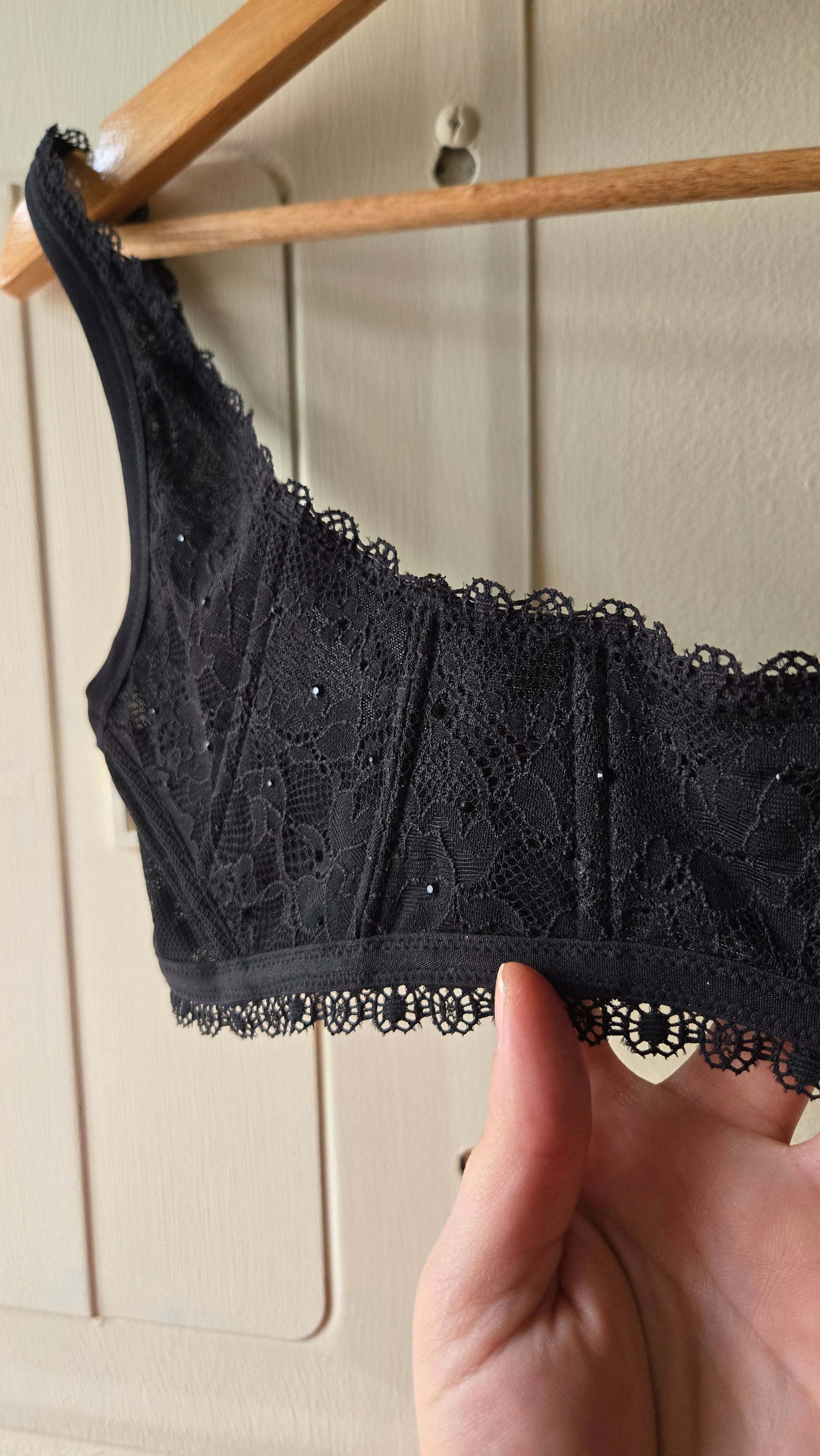 If only this was in my size! A gorgeous balconette bra from Victoria's Secret that has boning to really push the gals up. Made of fine lace and dotted with black rhinestones - this bra should be seen! May I suggest rocking it under a sheer blouse?