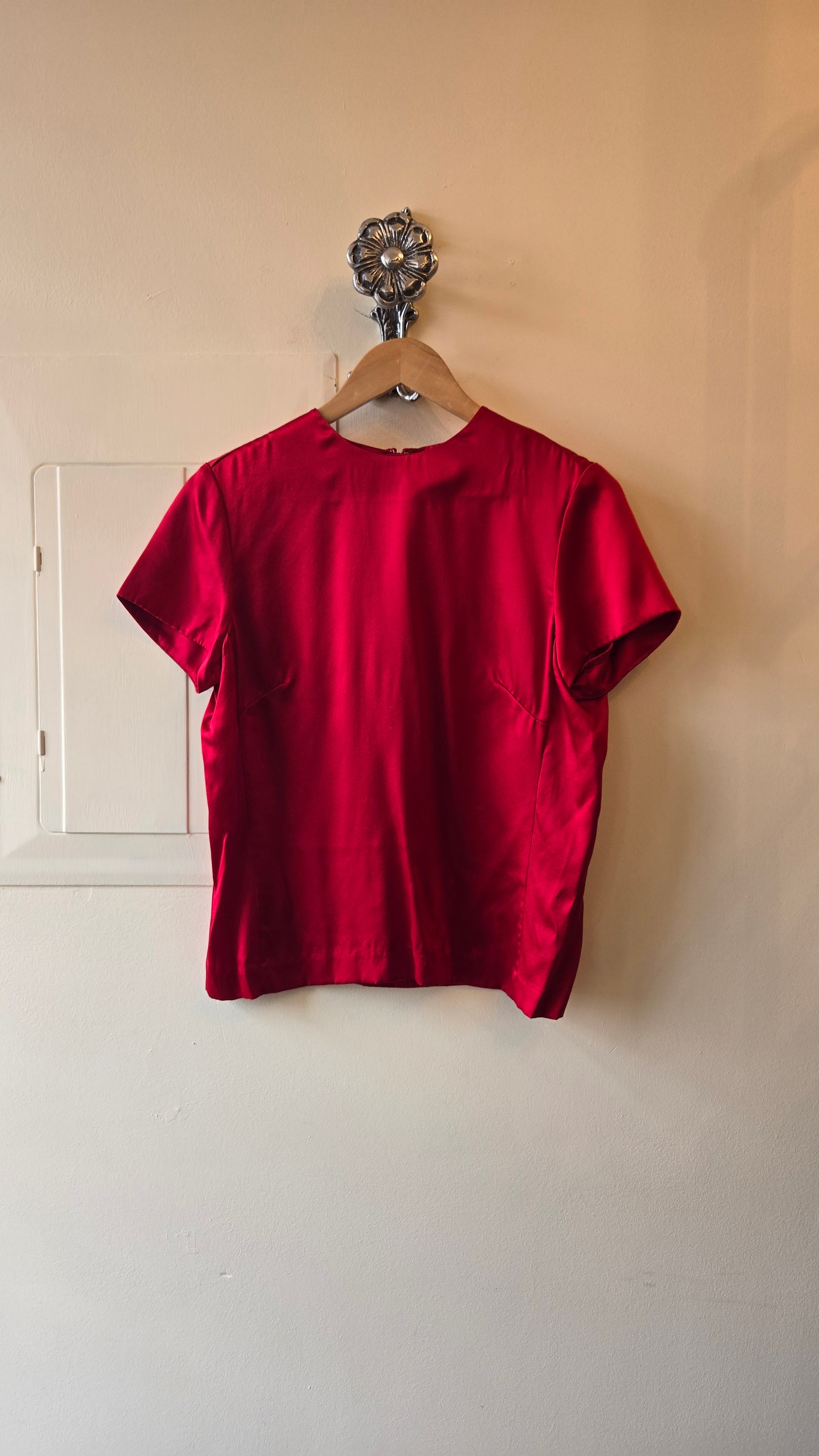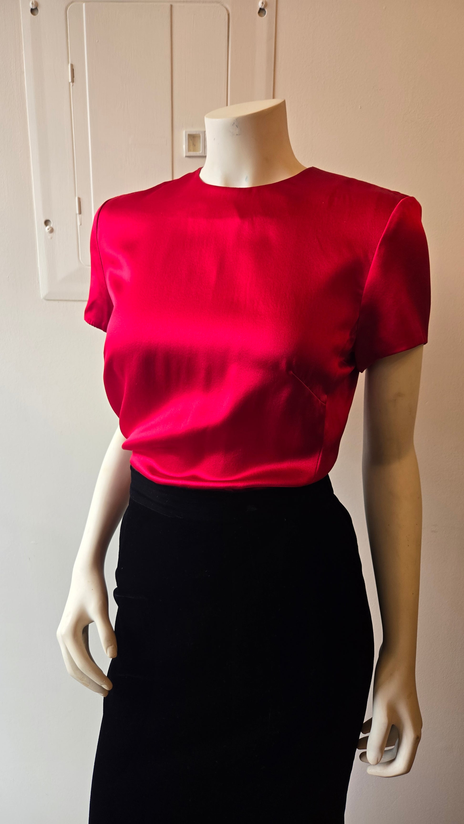 I can't think of another fabric I love as much as silk charmeuse. It has such a liquid look to it, that it automatically elevates anything it makes. This could be a simple red silk tee but because it's silk charmeuse it has a gorgeous sheen that looks (and is) luxe.